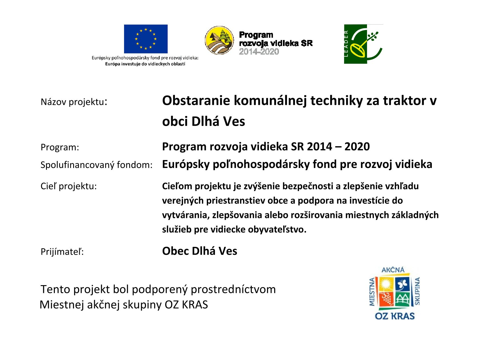 Obstaranie komunálnej techniky za traktor v obci Dlhá Ves