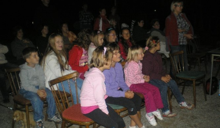Priemietanie filmu na dvore pri kultúrnom dome